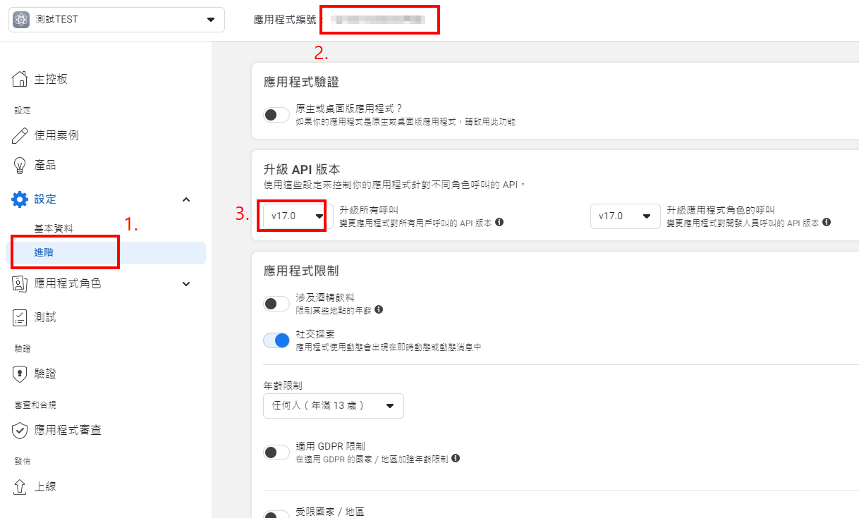 路徑:帳號 -> 應用程式 -> 新增 -> 建立新的應用程式編號