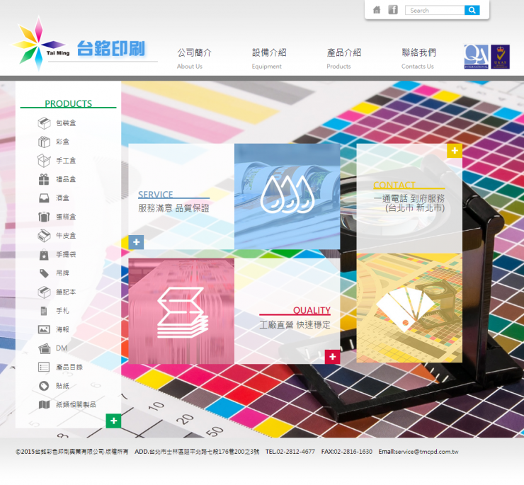 全部作品 精選作品 企業形象 購物網站 投審稿系統 客製平台 醫療美容 餐飲旅宿 教育/協會/政府 活動網站 RWD響應式 賀卡 3D環景攝影 首頁 iWare作品 台銘印刷 台銘印刷 介紹 台銘彩色印刷是一家成立於台北市的印刷公司,在地經營30餘年,主要從事包裝盒的設計與製造,秉持著品質至上的理念經營著。每一件案子,都會有一位專案經理負責,完整掌握品質與需求。台銘是一間工廠直營的公司,而工廠直營的公司,更能夠掌握貨品的成本、速度以及品質。 產業分類 企業形象 台大外語教學暨資源中心 教育/協會/政府 群登科技 精選作品 RWD響應式