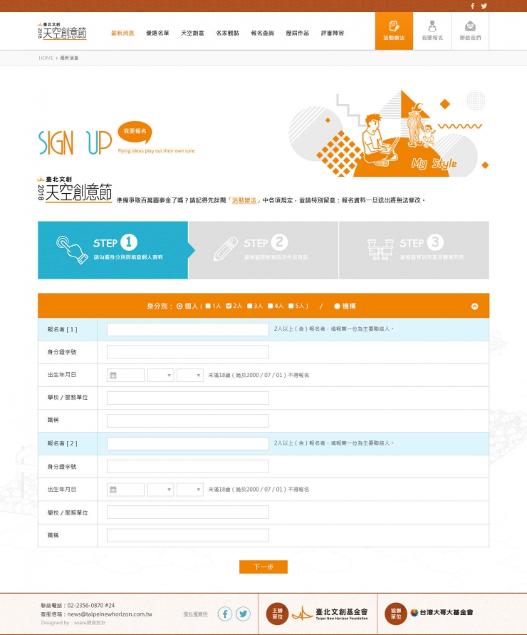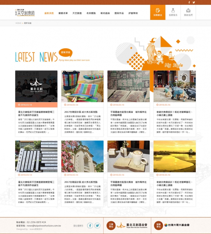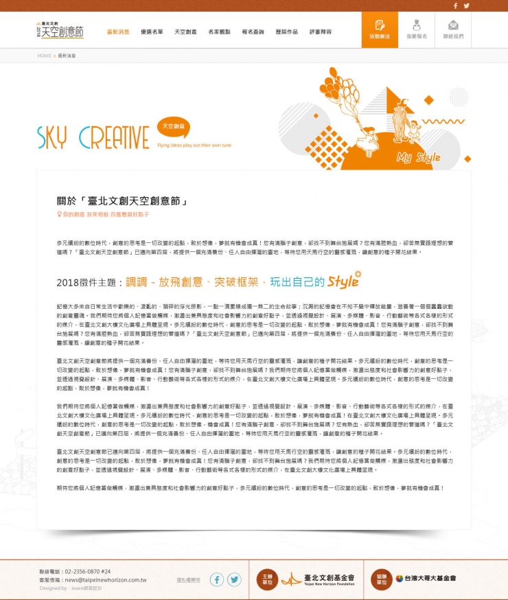 2015年啟動「臺北文創天空創意節」百萬徵件計畫,公開徵集創意提案,由臺北文創提供製作費、業師指導與展演空間,協助新生代文創工作者踏出圓夢的第一步,此計畫辦理至今以邁入第四屆,臺北文創基金會將持續發掘優秀文創人才。