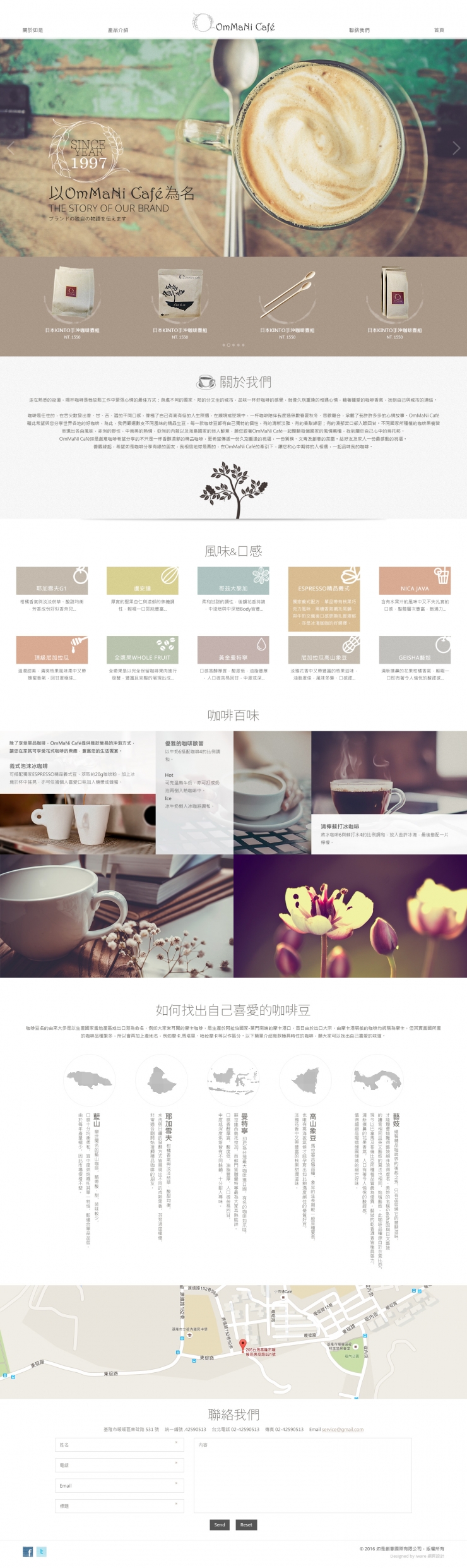 全部作品 精選作品 企業形象 購物網站 投審稿系統 客製平台 醫療美容 餐飲旅宿 教育/協會/政府 活動網站 RWD響應式 賀卡 3D環景攝影 首頁 iWare作品 如是創意 如是創意 介紹 我們堅持嚴選好品質的精品咖啡生豆,以人工方式仔細的挑除瑕疵豆後,再依照各種不同產區的咖啡豆給予適當的烘焙,儘管較耗費時間及人力成本,我們希望給予大家健康安心的好咖啡,而樸實的價格更希望每位朋友不需花大錢也能輕鬆品嚐精品。 產業分類 企業形象 餐飲旅宿 iKiGO 宜購生活網 精選作品 購物網站 RWD響應式 原創功能型網站 美鈦 企業形象 RWD響應式