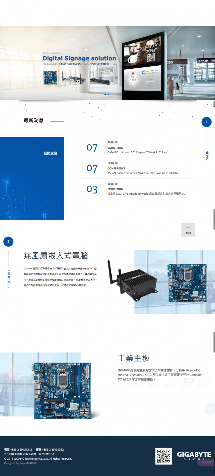 全部作品 精選作品 企業形象 購物網站 投審稿系統 客製平台 醫療美容 餐飲旅宿 教育/協會/政府 活動網站 RWD響應式 賀卡 3D環景攝影 首頁 iWare作品 技宸股份有限公司 官網 技宸股份有限公司 官網 介紹 GIGAIPC 工業級主機板除了擁有完整的標準尺寸,也提供小型的工業級主機板以及Intel®SDM系列。我們的產品主要由技嘉集團所屬位於臺灣南平工廠生產製造,產品可靠度備受肯定。為了能夠滿足我們客戶對工業級主機板各方面的需求,GIGAIPC開發出各種不同種類的主板,如應用在溫度相對嚴苛的寬溫級主機板和針對使用上的不同而特別增多某類I/O數量之機型。 製作團隊:規劃/Hannah, 設計/Karen, Katie 程式/Joe 功能項目 公司簡介 最新消息 檔案下載 單一檔案指定多類別 檔案分層管理 產業分類 精選作品 RWD響應式 美琪生技股份有限公司 精選作品 購物網站 RWD響應式 原創功能型網站 清河國際股份有限公司INTENIZA 精選作品 RWD響應式