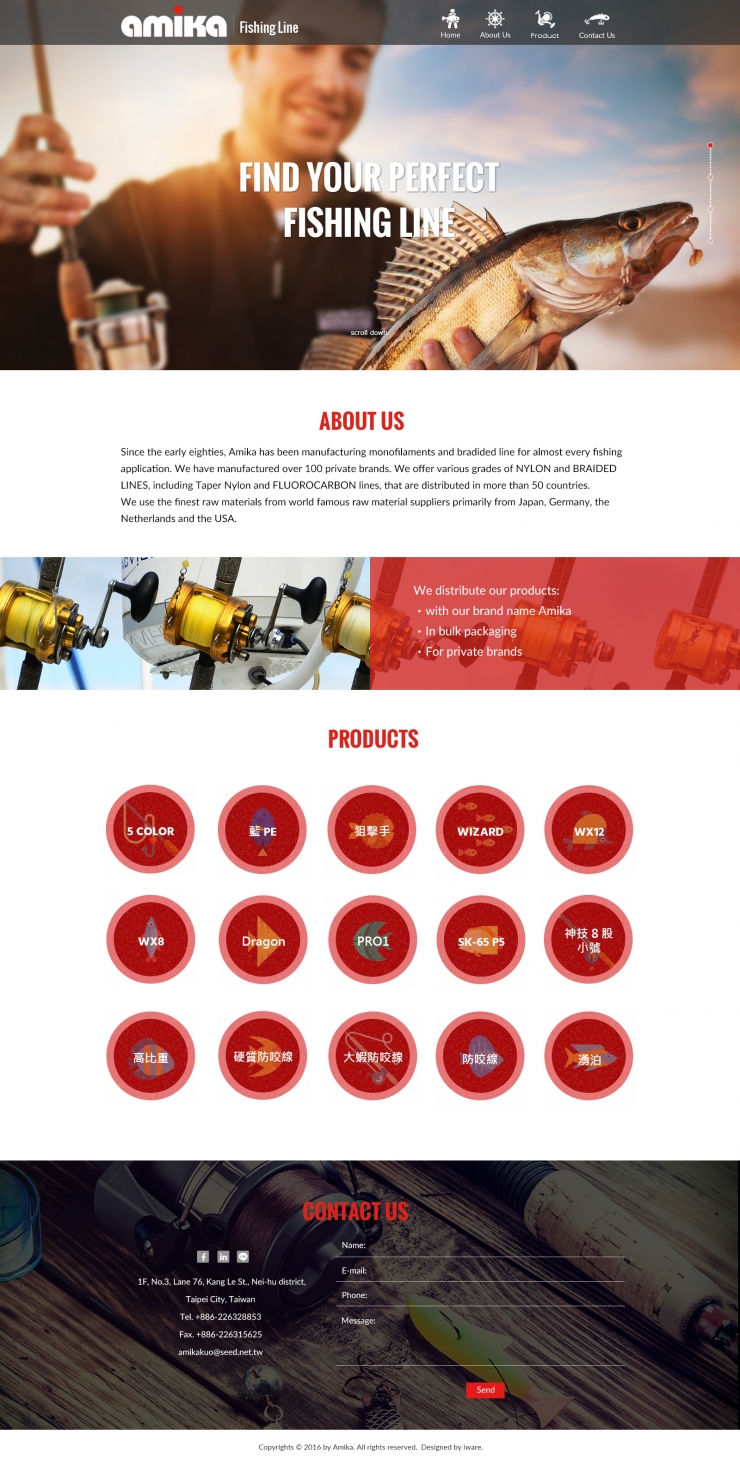 Amika has been the No1 producer of braided , carbon lines, fishing lines and is mostly known for its specialized products fibres as the top of the line consumer choice regarding strength and durability. 岡泰有限公司專精於各式PE,碳纖,尼龍之釣魚線開發及量產