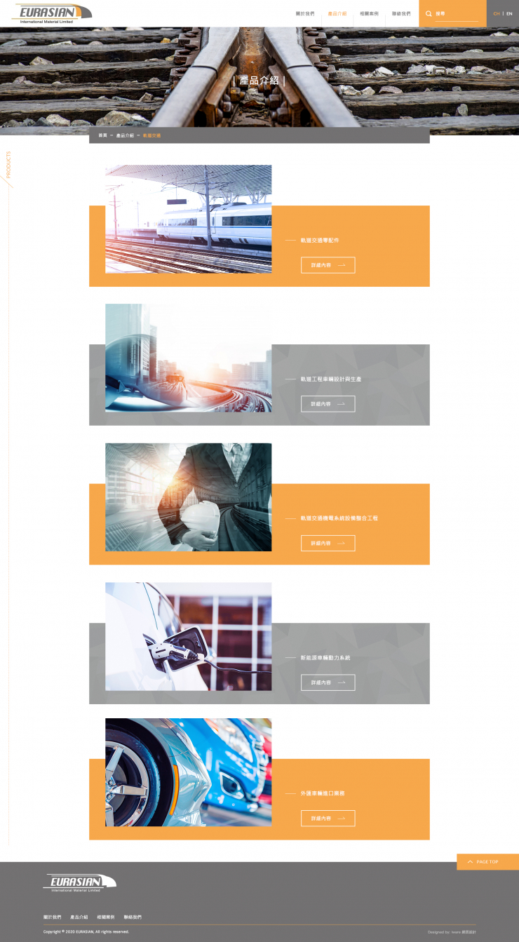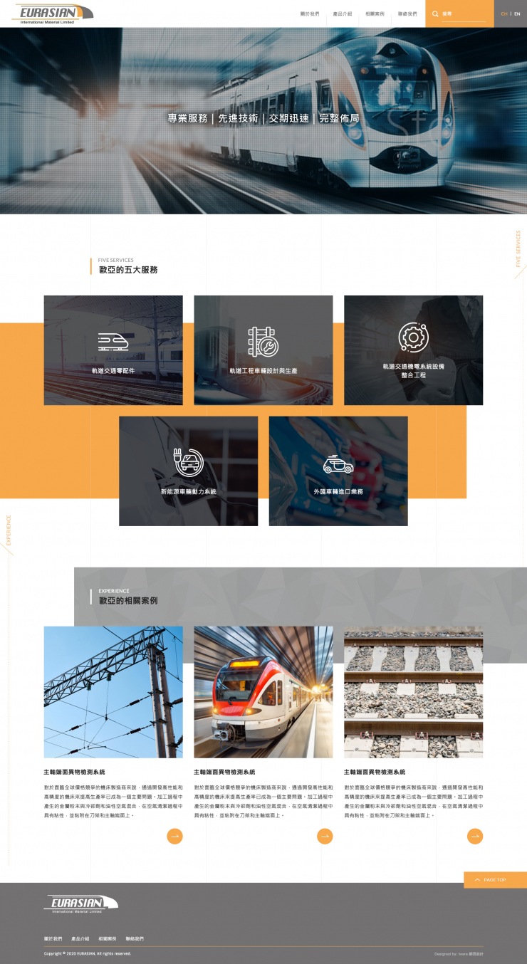 歐亞國際物資有限公司總公司位於台北市,專門從事鐵路相關產品的進出口買賣,其產品有車輪、車軸、鋼軌、軸承、枕木、道岔、列車資訊顯示系統、屏蔽門、鐵路用工程車等…。