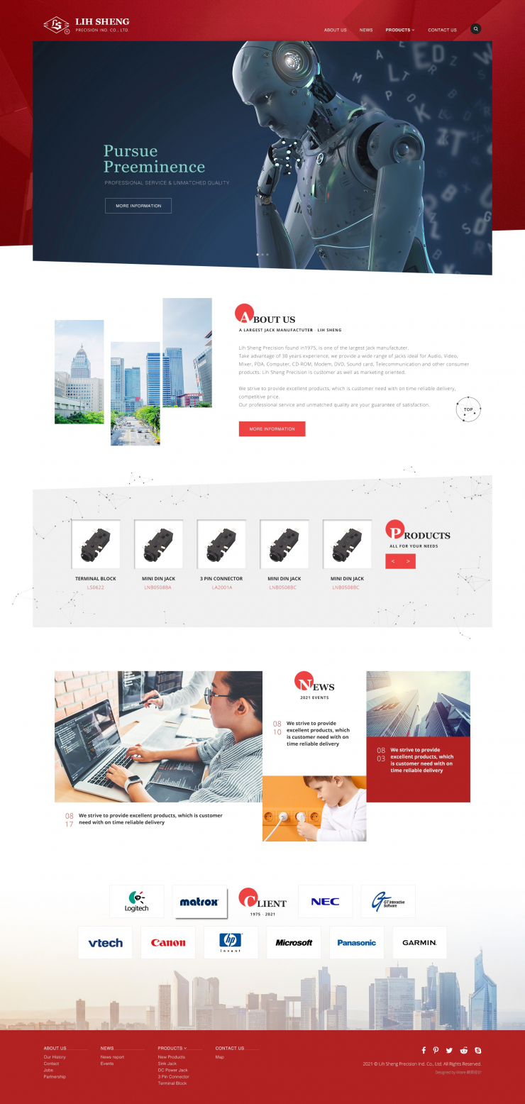 全部作品 精選作品 企業形象 購物網站 投審稿系統 客製平台 醫療美容 餐飲旅宿 教育/協會/政府 活動網站 RWD響應式 賀卡 3D環景攝影 首頁 iWare作品 立生精密工業股份有限公司 立生精密工業股份有限公司 介紹 立生精密工業股份有限公司,創立於西元1975年,是JACK專業製造廠。基於30年的經驗,我們提供製造Audio、Video、Mixer、Computer、CD-ROM、Modem、DVD、音效卡、PDA、通訊設備及其它消費性產品所須的Jacks。 規劃 /David、設計/Kaite、前端/ Karen、程式/Billy 功能項目 公司簡介 時間軸 產品介紹 產品詢價 產品進階搜尋 最新消息 產業分類 企業形象 RWD響應式 形象型網站 國立陽明大學心臟血管疾病研究中心 財團法人心臟醫學研究發展基金會 醫療美容 RWD響應式 原創功能型網站 矽碁科技股份有限公司 企業形象 RWD響應式