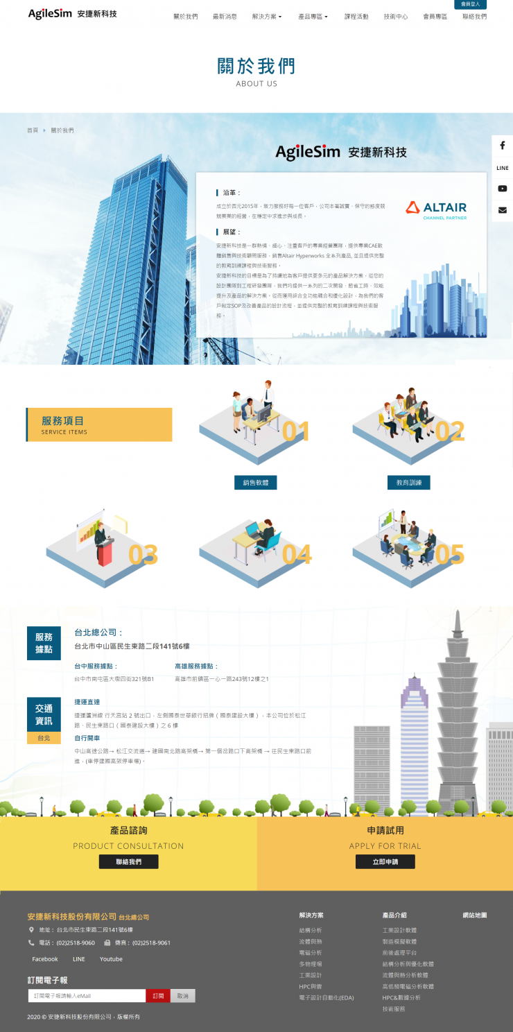全部作品 精選作品 企業形象 購物網站 投審稿系統 客製平台 醫療美容 餐飲旅宿 教育/協會/政府 活動網站 RWD響應式 賀卡 3D環景攝影 首頁 iWare作品 安捷新科技股份有限公司 安捷新科技股份有限公司 介紹 安捷新科技是一群熱情、細心、注重客戶的專業經營團隊,提供專業CAE軟體銷售與技術顧問服務,銷售Altair Hyperworks 全系列產品, 並且提供完整的教育訓練課程與技術服務。 製作團隊:規劃/Amber, 設計/Katie、Karen, 程式/Austin 功能項目 形象圖輪播 產品上架 解決方案 最新消息 會員 課程報名 技術中心 訂閱電子報 聯絡我們表單 產業分類 企業形象 RWD響應式 艾索科技股份有限公司 企業形象 RWD響應式 形象型網站 國立陽明大學心臟血管疾病研究中心 財團法人心臟醫學研究發展基金會 醫療美容 RWD響應式 原創功能型網站