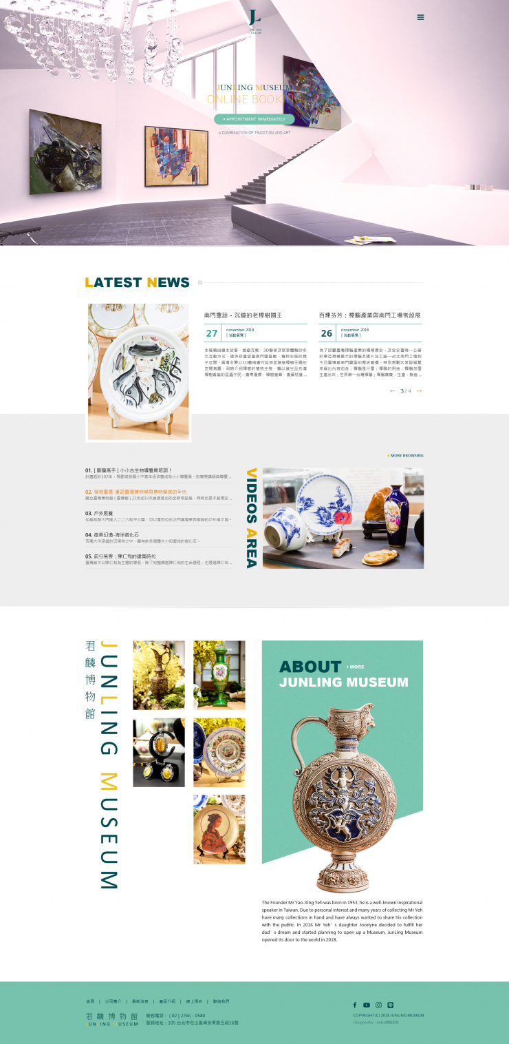 全部作品 精選作品 企業形象 購物網站 投審稿系統 客製平台 醫療美容 餐飲旅宿 教育/協會/政府 活動網站 RWD響應式 賀卡 3D環景攝影 首頁 iWare作品 君麟博物館 君麟博物館 介紹 君麟博物館收藏,收藏和展示來自中國以及其他亞洲國家與歐洲國家的綜合藝術品和古董。 該博物館也展示高級珠寶商品,並免費提供預約參觀。 製作團隊:規劃/Wayne, 設計/Ringo 前端/Karen 程式/Billy 功能項目 公司簡介 最新消息 典藏館 線上預約 產業分類 企業形象 RWD響應式 龍穎國際產業有限公司 企業形象 RWD響應式 臺北醫學大學 人文暨社會科學院 RWD響應式 教育/協會/政府
