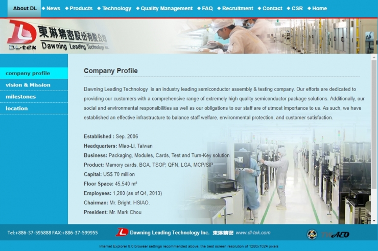 Dawning Leading Technology is an industry leading semiconductor assembly & testing company. Our efforts are dedicated to providing our customers with a comprehensive range of extremely high quality semiconductor package solutions. Additionally, our social and environmental responsibilities as well as our obligations to our staff are of utmost importance to us. As such, we have established an effective infrastructure to balance staff welfare, environmental protection, and customer satisfaction.