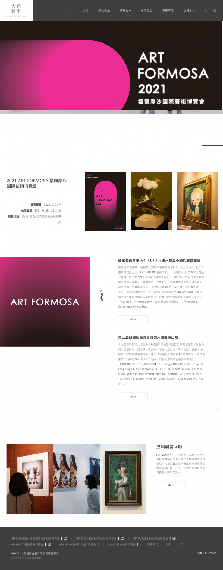 全部作品 精選作品 企業形象 購物網站 投審稿系統 客製平台 醫療美容 餐飲旅宿 教育/協會/政府 活動網站 RWD響應式 賀卡 3D環景攝影 首頁 iWare作品 大苑藝術會展有限公司 大苑藝術會展有限公司 介紹 大苑藝術(FORMOSA ART FAIR,2016-),係亞洲最卓越的當代藝術推手,匯聚全球畫廊與國際藝文機構,細心接待藝術收藏家,整合⽂化、創意、美學、時尚領域,大展泛藝⽂領域的無限想像。 製作團隊:規劃/Wayne, 設計/Katie 前端/Winnie 程式/Akira 功能項目 關於大苑 博覽會 藝廊薈萃 合作夥伴 展覽資訊 參展報名 貴賓專區 媒體中心 聯絡我們 產業分類 企業形象 RWD響應式 教育/協會/政府 三維工程顧問股份有限公司 精選作品 RWD響應式 花蓮動曼谷 精選作品 RWD響應式 教育/協會/政府