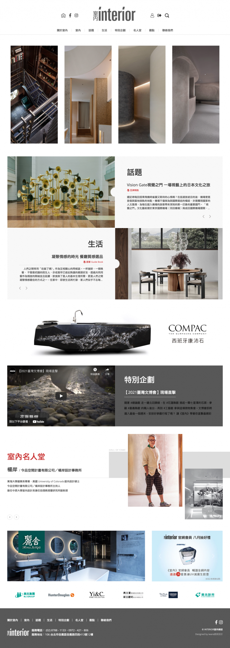 全部作品 精選作品 企業形象 購物網站 投審稿系統 客製平台 醫療美容 餐飲旅宿 教育/協會/政府 活動網站 RWD響應式 賀卡 3D環景攝影 首頁 iWare作品 美兆生活事業股份有限公司 美兆生活事業股份有限公司 介紹 《室內interior》是一本綜觀設計、人文、美學的雜誌,1989年創刊至今,以精粹而具觀瞻的視野,透析了空間與設計的定位,拉近台灣與世界的空間座標。雜誌內容選輯建築與空間作品的精彩實例。當期焦點主題採用中英雙語呈現,詳述設計概念、佈局規劃、美學精神,無論本土意識、國際觀、小眾口味,實驗性作品都能在此一平台競技。 製作團隊:規劃/Wayne, 設計/Ringo 前端/Trista 程式/Akira 功能項目 關於室內 室內 話題 生活 特別企劃 名人堂 觀點 聯絡我們 產業分類 精選作品 RWD響應式 活動網站 威速登科技股份有限公司 企業形象 RWD響應式 美兆診所 精選作品 醫療美容 RWD響應式
