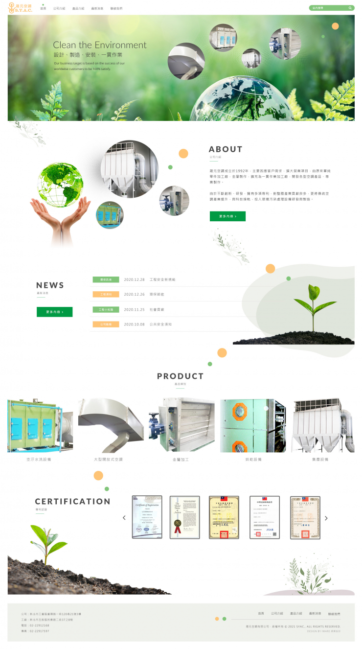 全部作品 精選作品 企業形象 購物網站 投審稿系統 客製平台 醫療美容 餐飲旅宿 教育/協會/政府 活動網站 RWD響應式 賀卡 3D環景攝影 首頁 iWare作品 晟元空調有限公司 晟元空調有限公司 介紹 晟元空調成立1992年,主要因應客戶需求,擴大營業項目,由原來單純零件加工廠,金屬製作,擴充為一貫作業加工廠,開發各型空調產品、專業製作。由於不斷創新、研發,擁有多項專利,對整體產業貢獻良多,更將傳統空調產業提升,與科技接軌,投入環境污染處理設備研發與製造。 規劃David、設計 Winnie、前端Trista、程式育偉 功能項目 RWD網站 公司介紹 產品介紹 最新消息 聯絡我們 產業分類 企業形象 RWD響應式 樂久旅行社有限公司 精選作品 餐飲旅宿 RWD響應式 原創功能型網站 臺北醫學大學-生醫產學聯盟 教育/協會/政府