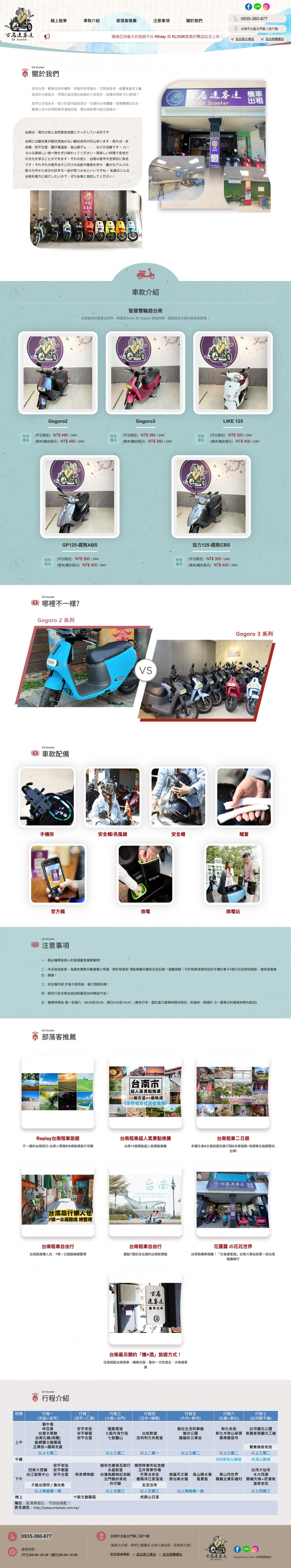 全部作品 精選作品 企業形象 購物網站 投審稿系統 客製平台 醫療美容 餐飲旅宿 教育/協會/政府 活動網站 RWD響應式 賀卡 3D環景攝影 首頁 iWare作品 古巷速克達 古巷速克達 介紹 來到台南,騎著全新的機車,舒服的享受陽光、空氣與美食,遊覽著最有文藝氣息的古都風光,穿梭在富含歷史脈絡的大街巷弄,這樣的假期 您心動嗎? 我們以民宿為本,致力於提供遊客美好、完善的台南體驗!智慧雙輪趴趴走,騎著心目中的理想愛車漫遊府城,歷史與新意也能完美融合。 製作團隊:規劃/Kanie 設計/Patty,Michelle 程式/Billy 客服/Janice 功能項目 動態形象首頁視覺規劃 線上租車 線上金流 產業分類 購物網站 餐飲旅宿 嘉芮牙醫診所 企業形象 醫療美容 岡泰有限公司 精選作品