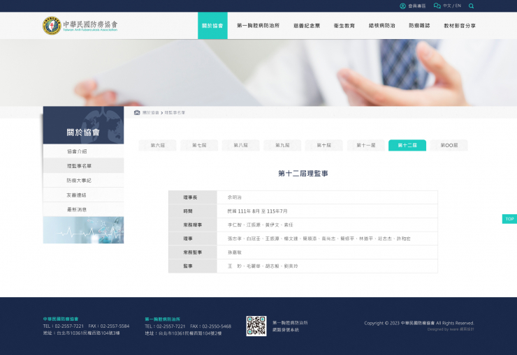 全部作品 精選作品 企業形象 購物網站 投審稿系統 客製平台 醫療美容 餐飲旅宿 教育/協會/政府 活動網站 RWD響應式 賀卡 3D環景攝影 首頁 iWare作品 中華民國防癆協會 中華民國防癆協會 介紹 製作團隊:規劃/Amber, 視覺&前端/Peng & Karen, 程式/Carol 功能項目 關於協會 監事名單 防癆大事紀 友善連結 第一胸腔病防治所介紹 診療項目 醫療團隊列表 慈善紀念票 財務報告 衛生教育 防癆雜誌 教材影音 下載專區 產業分類 精選作品 RWD響應式 教育/協會/政府 台灣大學 E-freeway 線上外語自學教室網站 RWD響應式 教育/協會/政府 桂冠實業股份有限公司官網 精選作品 企業形象 購物網站 RWD響應式