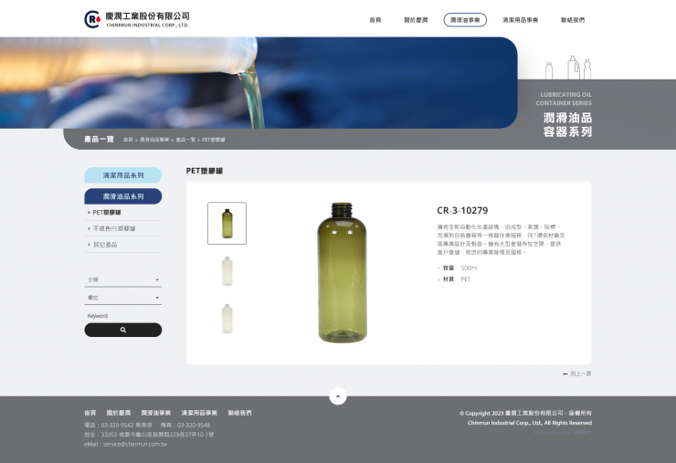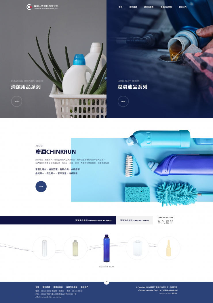 全部作品 精選作品 企業形象 購物網站 投審稿系統 客製平台 醫療美容 餐飲旅宿 教育/協會/政府 活動網站 RWD響應式 賀卡 3D環景攝影 首頁 iWare作品 慶潤工業股份有限公司 慶潤工業股份有限公司 介紹 規劃/Lori, 視覺&前端/Katie & Winnie, 程式/Austin 功能項目 關於慶潤 潤滑油事業 清潔用品事業 聯絡我們 產業分類 企業形象 RWD響應式 全方位拍賣 精選作品 RWD響應式 比利迦實業股份有限公司 企業形象 RWD響應式