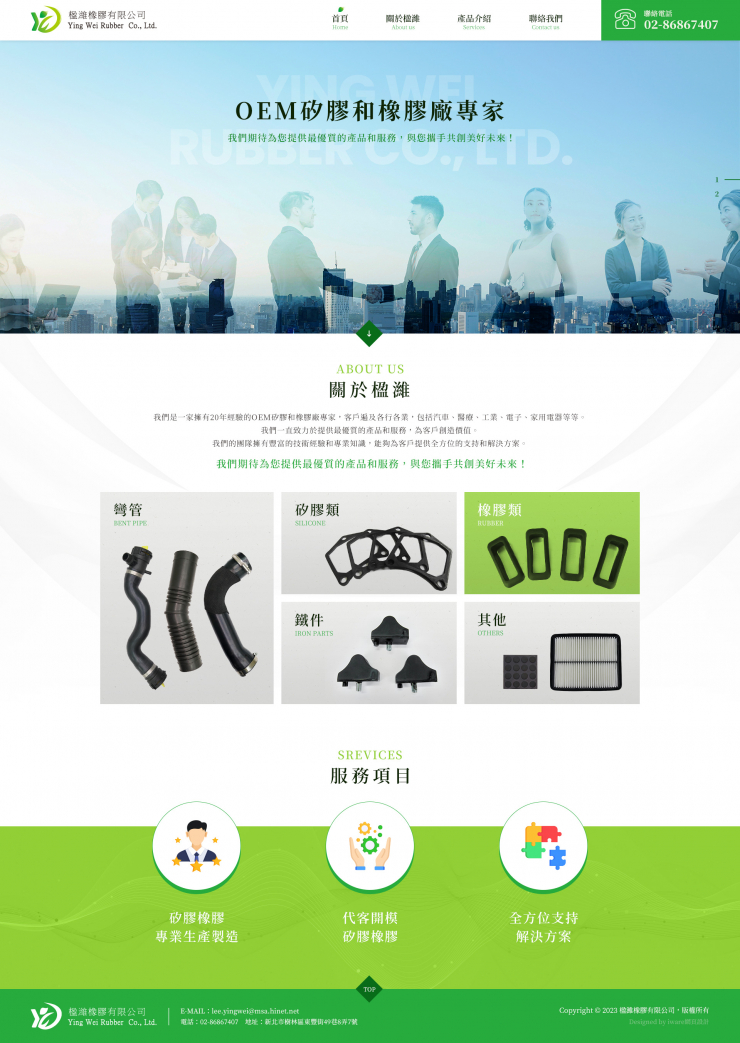 全部作品 精選作品 企業形象 購物網站 投審稿系統 客製平台 醫療美容 餐飲旅宿 教育/協會/政府 活動網站 RWD響應式 賀卡 3D環景攝影 首頁 iWare作品 楹濰橡膠有限公司 楹濰橡膠有限公司 介紹 規劃/Lori, 視覺&前端/Trista 功能項目 關於楹濰 產品介紹 聯絡我們 產業分類 企業形象 RWD響應式 冠坊歐式古典家具 精選作品 RWD響應式 Dr. Wells 牙醫連鎖 企業形象 RWD響應式
