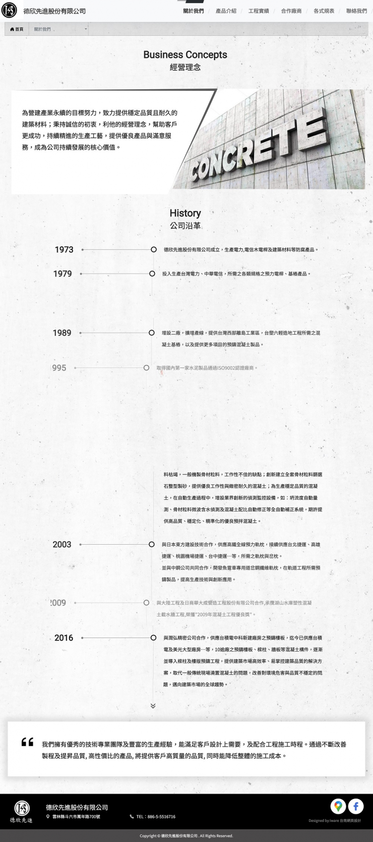 全部作品 精選作品 企業形象 購物網站 投審稿系統 客製平台 醫療美容 餐飲旅宿 教育/協會/政府 活動網站 RWD響應式 賀卡 3D環景攝影 首頁 iWare作品 德欣先進股份有限公司 德欣先進股份有限公司 介紹 製作團隊:規劃/Kanie, 設計/Patty, 程式/Bear 功能項目 基本圖文編輯功能 工程實績資料設定 圖片樣式美編設計 各式規表資料上傳 產業分類 企業形象 RWD響應式 巢藝室內裝修設計 精選作品 RWD響應式 竑輝不動產 精選作品 RWD響應式