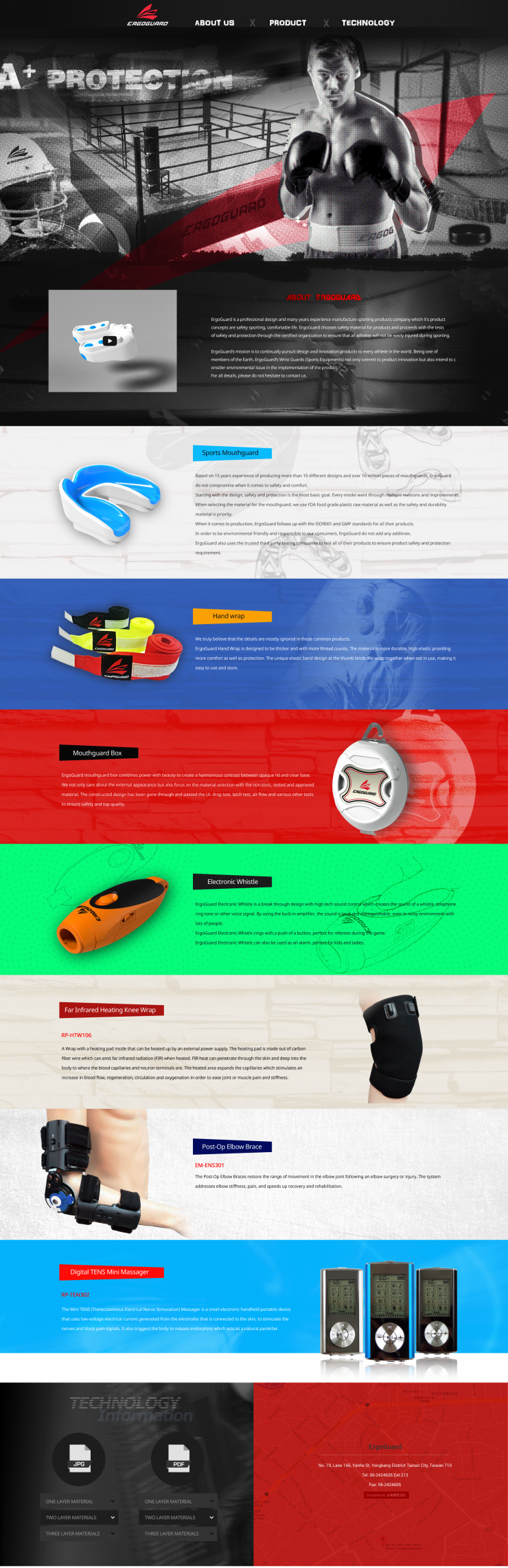 ErgoGuard is a professional design and manufacturing company in Taiwan that makes sporting related products. Our concept is to create safe and comfortable sporting. Our materials are carefully chosen and tested for quality and safety via third party certified organization in order to prevent athletes from getting injured during sporting. ErgoGuard mission is to continually pursuit product innovation for every athlete in the world. Being one of the members of the Earth, we also take environmental issues very seriously.