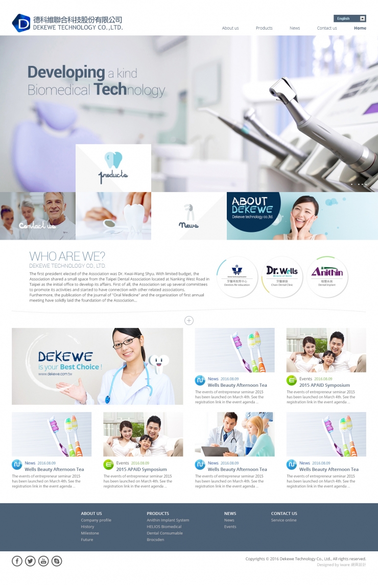 全部作品 精選作品 企業形象 購物網站 投審稿系統 客製平台 醫療美容 餐飲旅宿 教育/協會/政府 活動網站 RWD響應式 賀卡 3D環景攝影 首頁 iWare作品 德科維 德科維 介紹 「德科維聯合科技公司」緣自正揚生醫科技公司 ,獨立發展口腔醫療事業體。旗下有三個事業品牌「Dr.Wells牙醫連鎖、RS植體系列品牌、維瀚再教育中心 」 三大發展事業體。 產業分類 醫療美容 RWD響應式 芝蔴街美語拼字爭霸賽 RWD響應式 教育/協會/政府 活動網站 原創功能型網站 尖端數位牙體技術所 醫療美容 RWD響應式