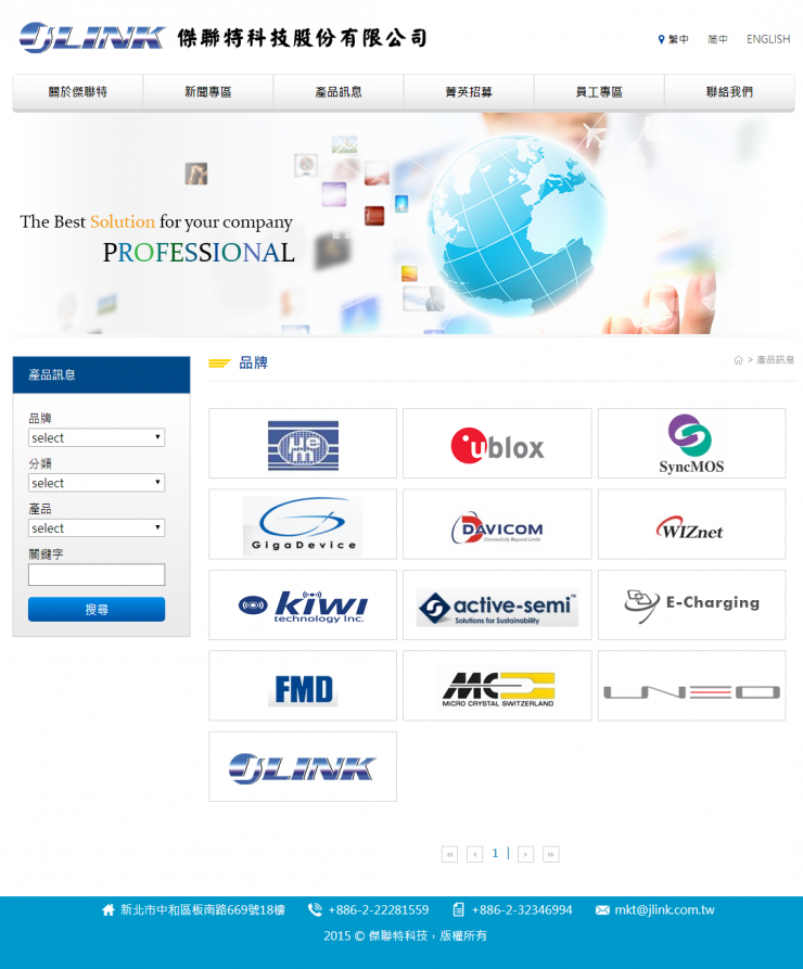 全部作品 精選作品 企業形象 購物網站 投審稿系統 客製平台 醫療美容 餐飲旅宿 教育/協會/政府 活動網站 RWD響應式 賀卡 3D環景攝影 首頁 iWare作品 傑聯特科技 傑聯特科技 介紹 傑聯特科技股份有限公司成立於西元2000年,為一專業的電子零件通路商,代理許多國內外知名電子零組件,也因此累積了豐富的產業經驗及技術。經過多年的發展,我們也針對客戶需求提出產品解決方案,如近期新推出的心率模組與GPS模組。客戶群涵蓋網通、物聯網、數位監控、工業控制、電源供應器、消費性電子相關產業,已與許多客戶與供應商建立長期合作關係。 產業分類 企業形象 RWD響應式 台旭環境科技 企業形象 RWD響應式 大家健康雜誌 精選作品 購物網站 RWD響應式 原創功能型網站