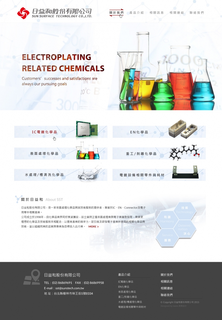 全部作品 精選作品 企業形象 購物網站 投審稿系統 客製平台 醫療美容 餐飲旅宿 教育/協會/政府 活動網站 RWD響應式 賀卡 3D環景攝影 首頁 iWare作品 日益和 日益和 介紹 日益和股份有限公司,是一家特用化學品與其技術服務的提供者,擁有電鍍製程設計與化學品開發生產的能力,提供客戶高品質且具有低成本優勢的產品,同時提供超快速優質的技術與運輸服務。專營於微影製程,導線架封裝,連接器與化學鎳等之化學品。 產業分類 企業形象 大家健康雜誌 精選作品 購物網站 RWD響應式 原創功能型網站 簡易ERP系統 客製平台